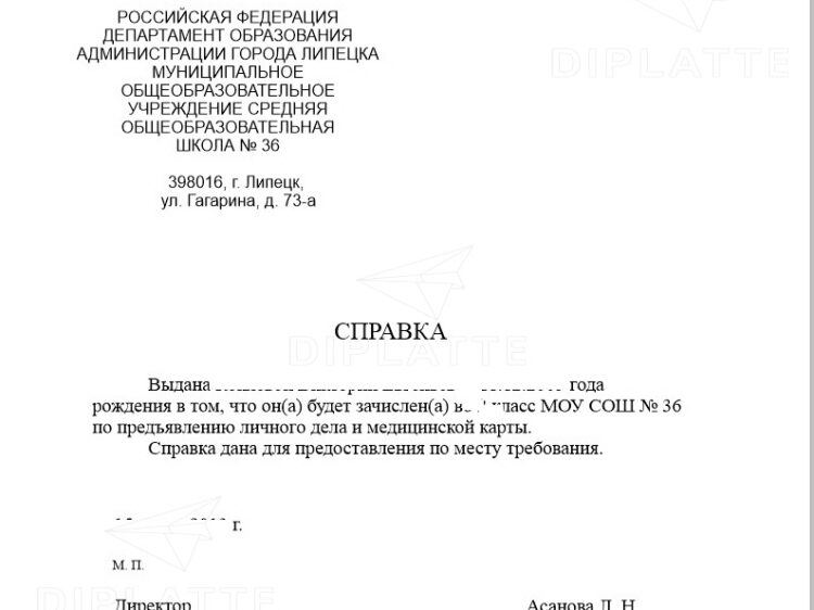 Справка с места работы